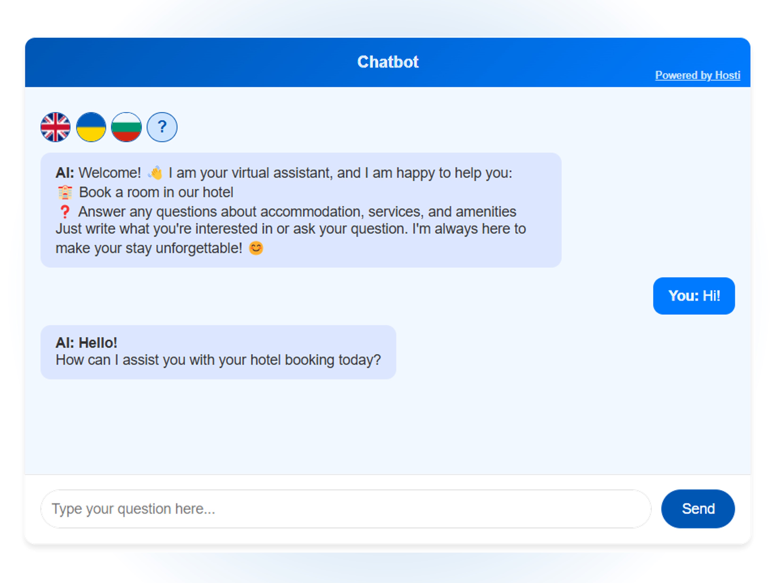 Hosti is designed to transform how hotels handle customer inquiries. By leveraging advanced AI, we enable hotels to provide consistent, human-like, high-quality support without the limitations and costs of traditional contact centers or reception desks - with analytics provided to you as a cherry on top.